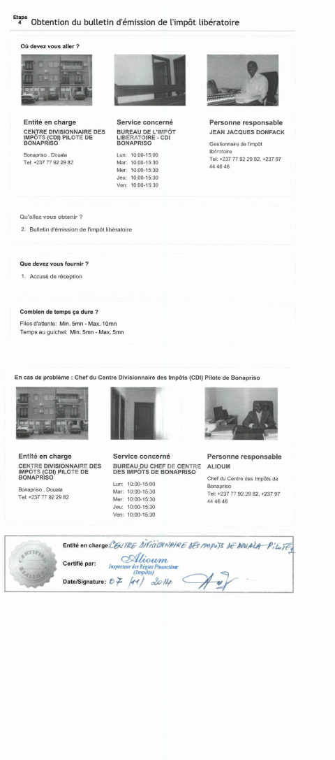 Service concernéBureau de l'impôt libératoire - CDI Bonapriso
