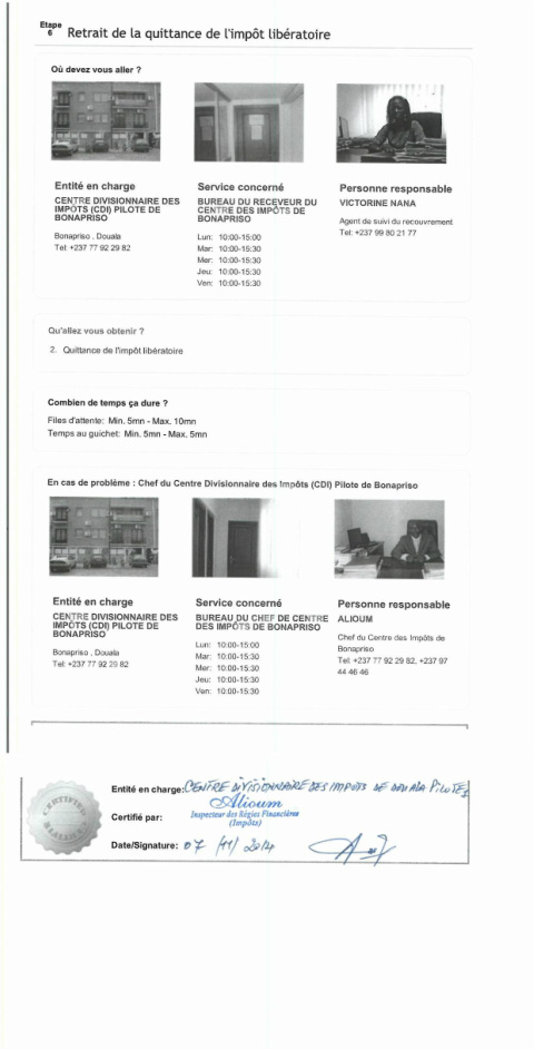 Service concernéBureau du chef de centre des Impôts de Bonapriso