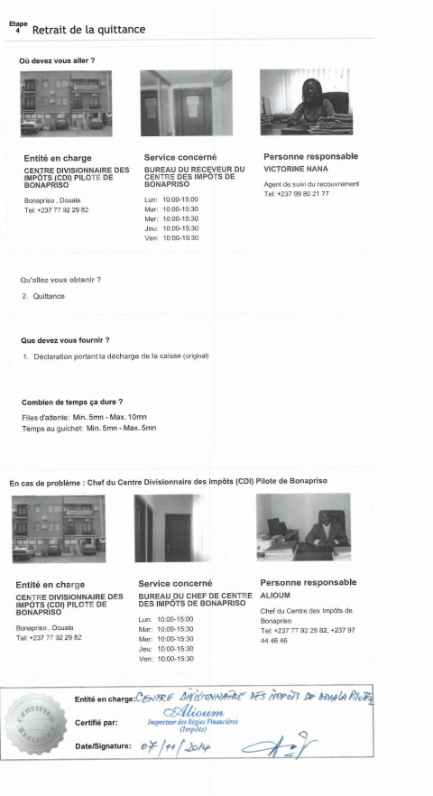 Service concernéBureau du receveur du centre des impôts de Bonapriso